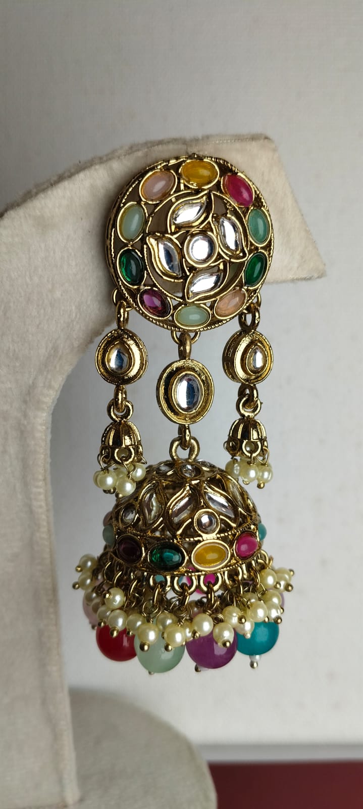 SAFETY AND CARE – Keep the jhumka earrings jewelry away from direct heat, dish-washing soap, detergents, lotions/creams, perfumes/deodorants or any other harmful chemicals. Clean the jewelry with a dry cotton cloth and store it in airtight containers or jewelry collection boxes.