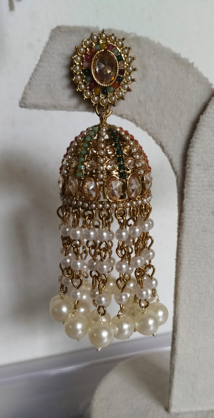 SAFETY AND CARE – Keep the jhumka earrings jewelry away from direct heat, dish-washing soap, detergents, lotions/creams, perfumes/deodorants or any other harmful chemicals. Clean the jewelry with a dry cotton cloth and store it in airtight containers or jewelry collection boxes.
